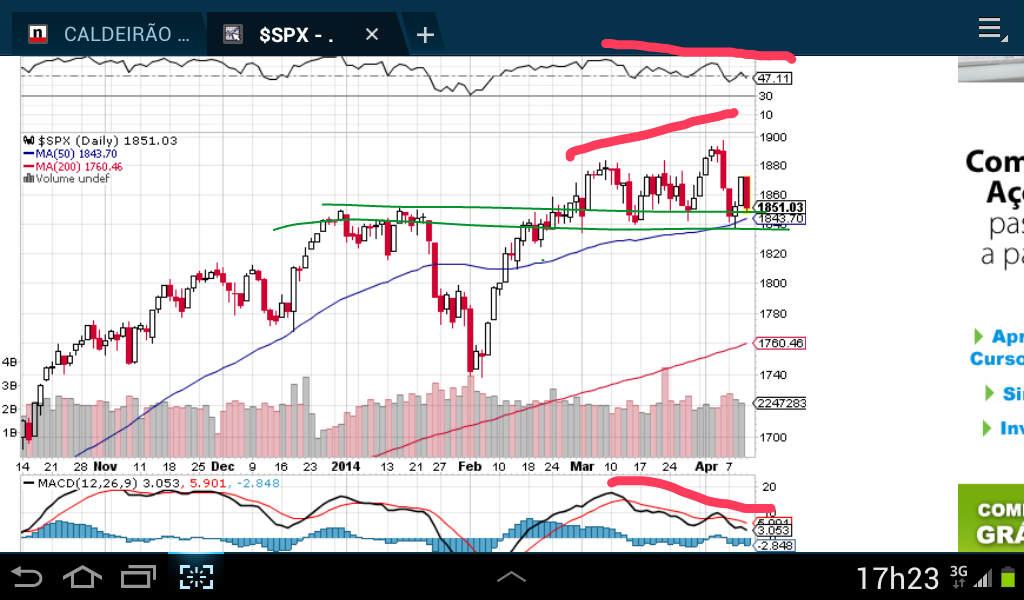 A ma100 tem funcionado bem no S&P, a segurar a cotação, veremos...