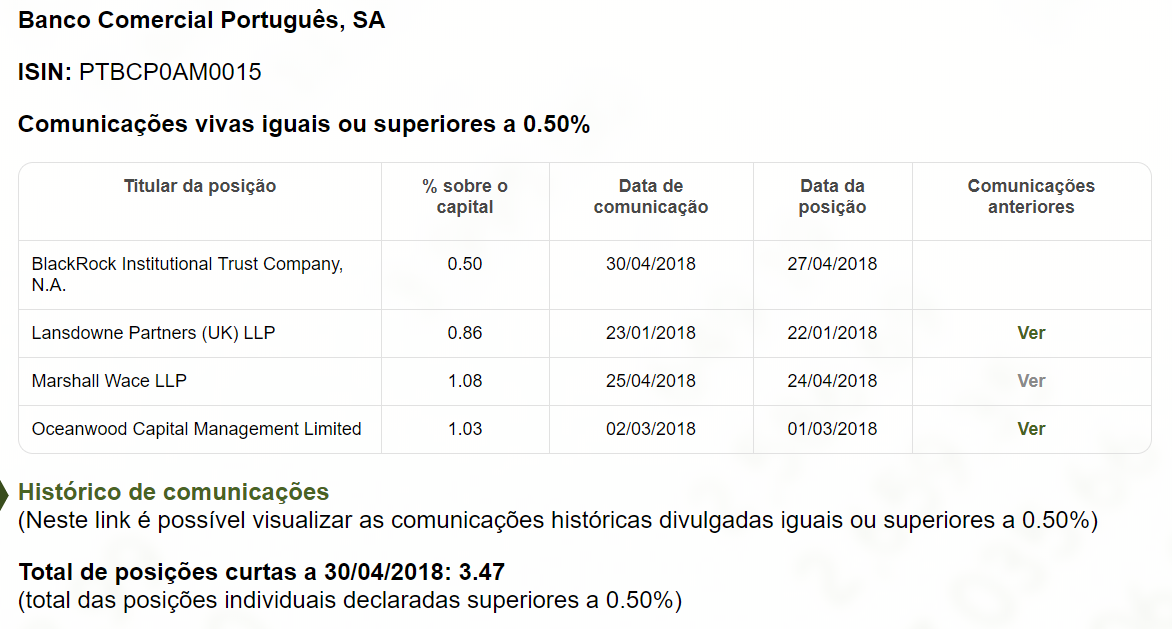 BlackRock com posição curta no bcp (0.5%):