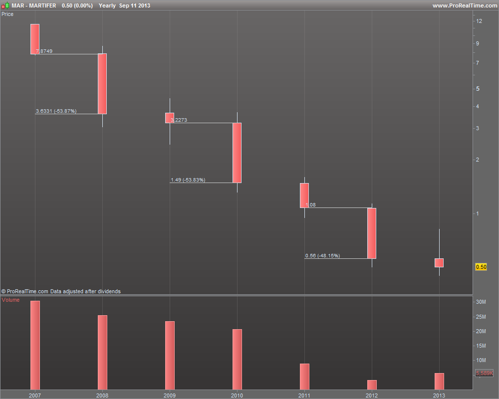 O que te posso dizer é que a Martifer está a dar prejuizo a muita gente. Tem um capital próprio de 1,67/acção e está um pouco endividada tendo prejuizo e ninguém sabe quando ela vai deixar de o ter. Pode ser já este ano (o que não acredito) mas pode ser daqui a 10 anos ou mais (falência, o que também não acredito).