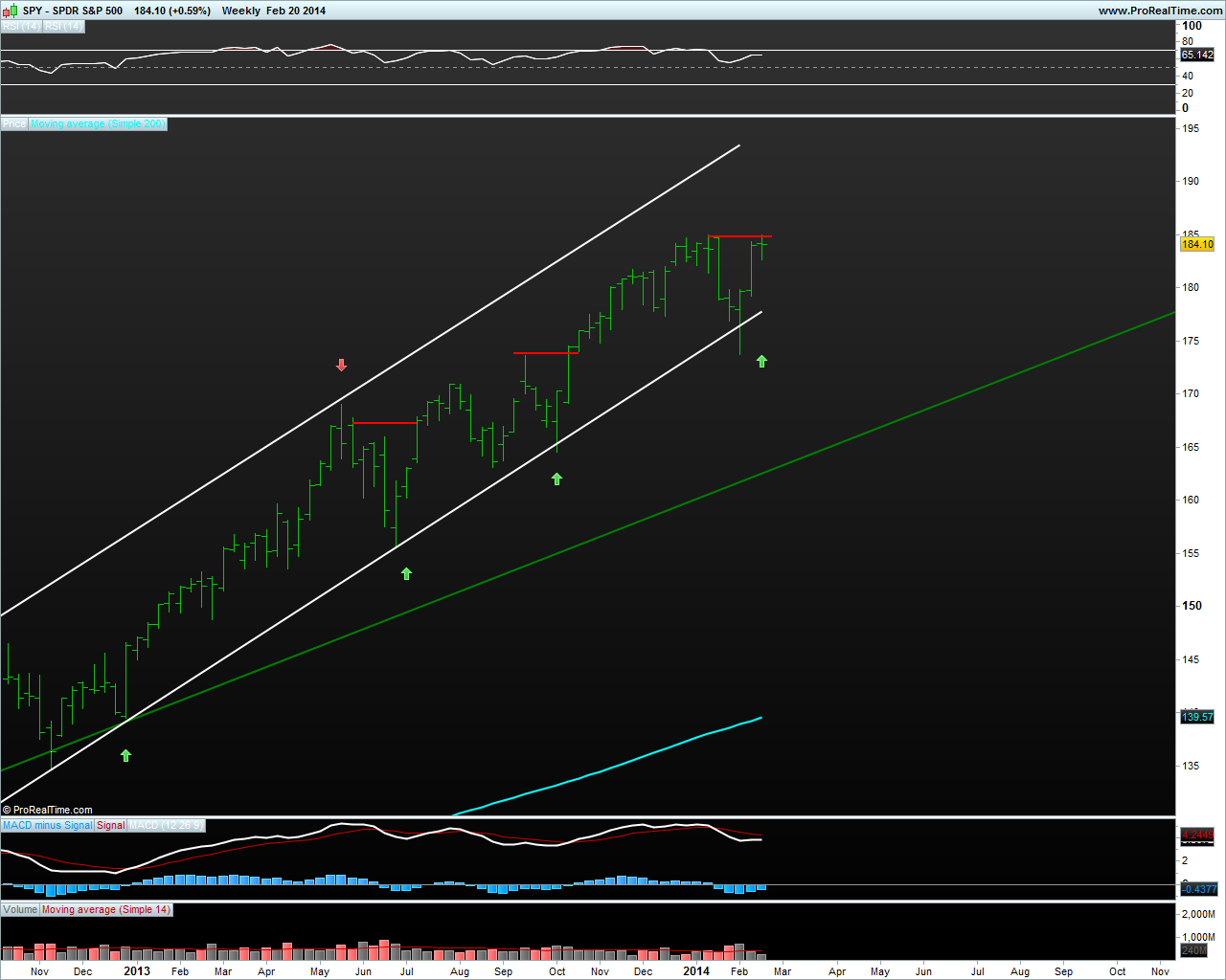 Como é óbvio as subidas não vão ser eternas no SP500 ("bull market"), mas se olharmos para trás o SP500 está perto de fazer 5 anos em "bull market" e fez recentemente máximos de sempre, em que porventura ninguém acreditava...para já a tendência primária é ascendente sem sinais de fraqueza e para quem vem com posições longas de médio/longo prazo para já está tranquilo.Agora isto depende do "timeframe" que cada um negoceia e respectiva estratégia.