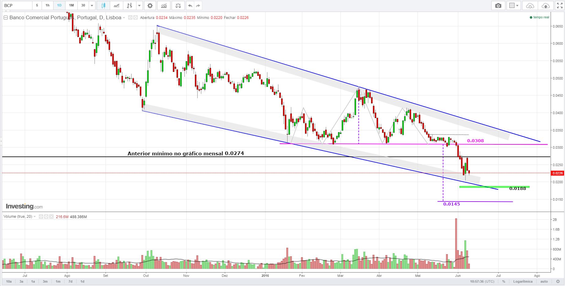 Aonde estará essa zona no BCP? A resposta poderia valer "a million dollars question", é muito difícil vaticinar o que seja quando os nervos de quem está dentro estão à flor da pele, mas atrevo-me a dizer que com grande probabilidade a base de reversão de médio / longo prazo é provável que se encontre na zona dos 0,0160 aos 0,0205.