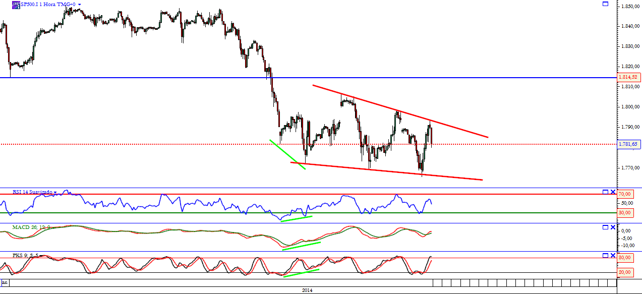 Existe uma div positiva no gráfico 4h. No de uma hora, ainda falta fazer uma. Portanto conto com um mínimo abaixo do de ontem, ou seja a 1769.