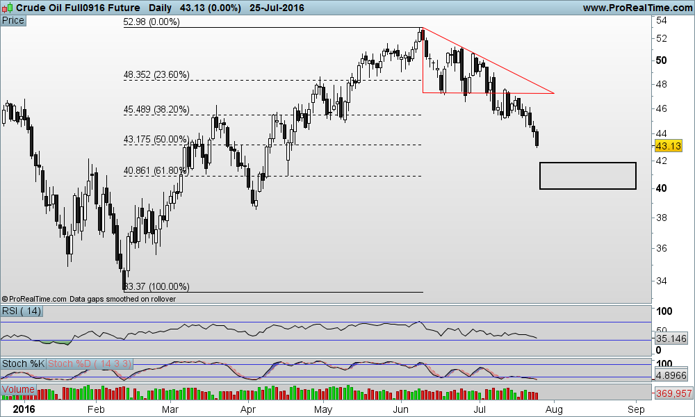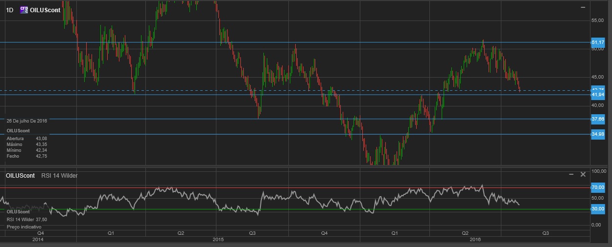 Nova tentativa de quebrar a agora resistência pelos $45,60/$46, valorização do dólar a dar uma ajuda.