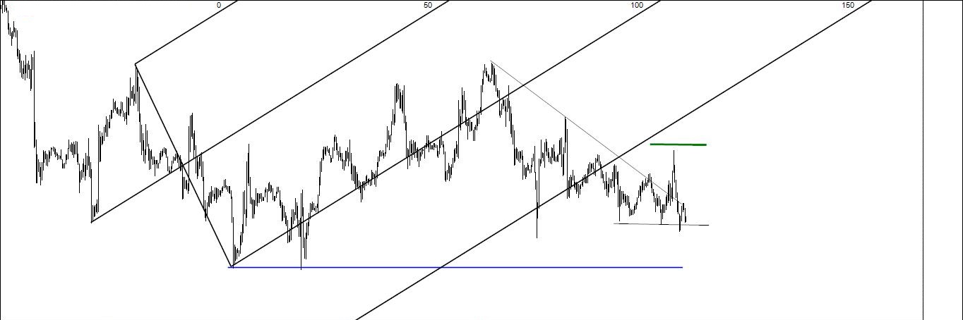 Do que percebi, diria tb que utilizaste a linha inferior da fork ascendente como resistência a qual, juntamente com a linha descendente de máximos, deverá, na intersecção das duas linhas, criar uma zona ideal para shortar... (o tal X no mapa do tesouro que o T. Morge refere num qq artigo), isso parece-me claro.
