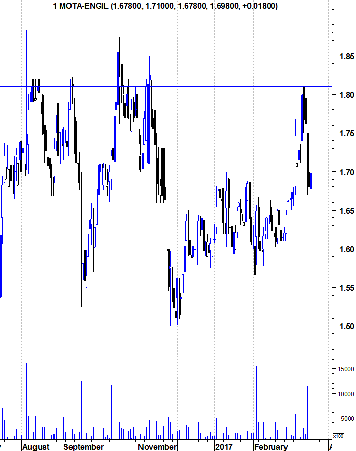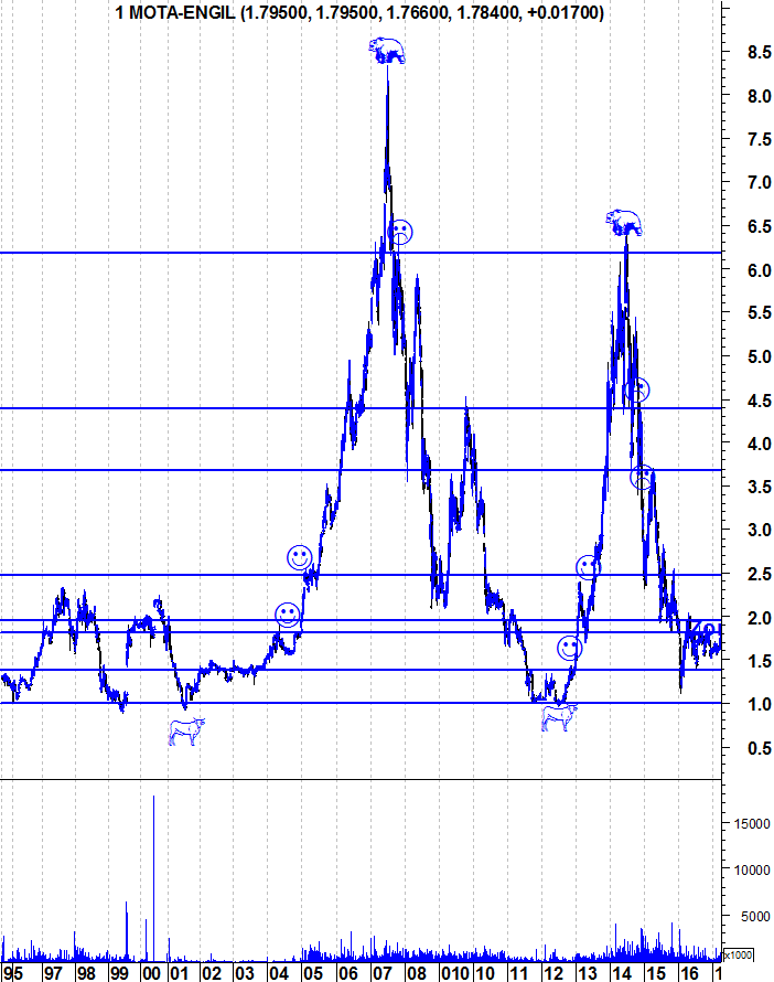 Consideram que a passagem dos 1,70€ foi o primeiro passo para a Mota Engil abandonar a lateralização em que se encontrava rumo á zona dos 1,80€/1,90€? Hoje apesar do despejo inicial, os 1,70€ aguentaram bem. Seria um bom ponto de entrada ou é mais prudente esperar pelo rompimento dos 1,80€/1,90€? Outro factor interessante é que o volume tem vindo a aumentar nas últimas sessões.