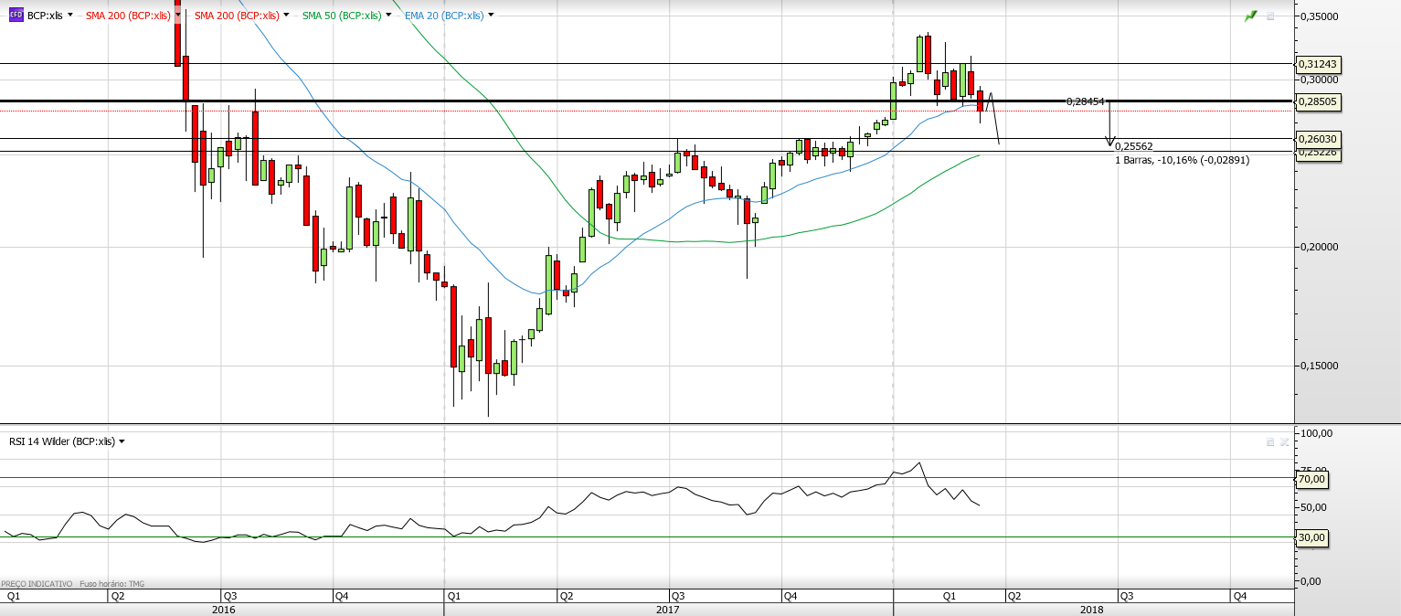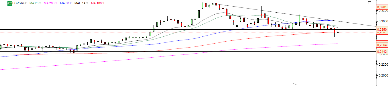 o BCP passa a bear market quando quebrar o suporte dos 0,26.