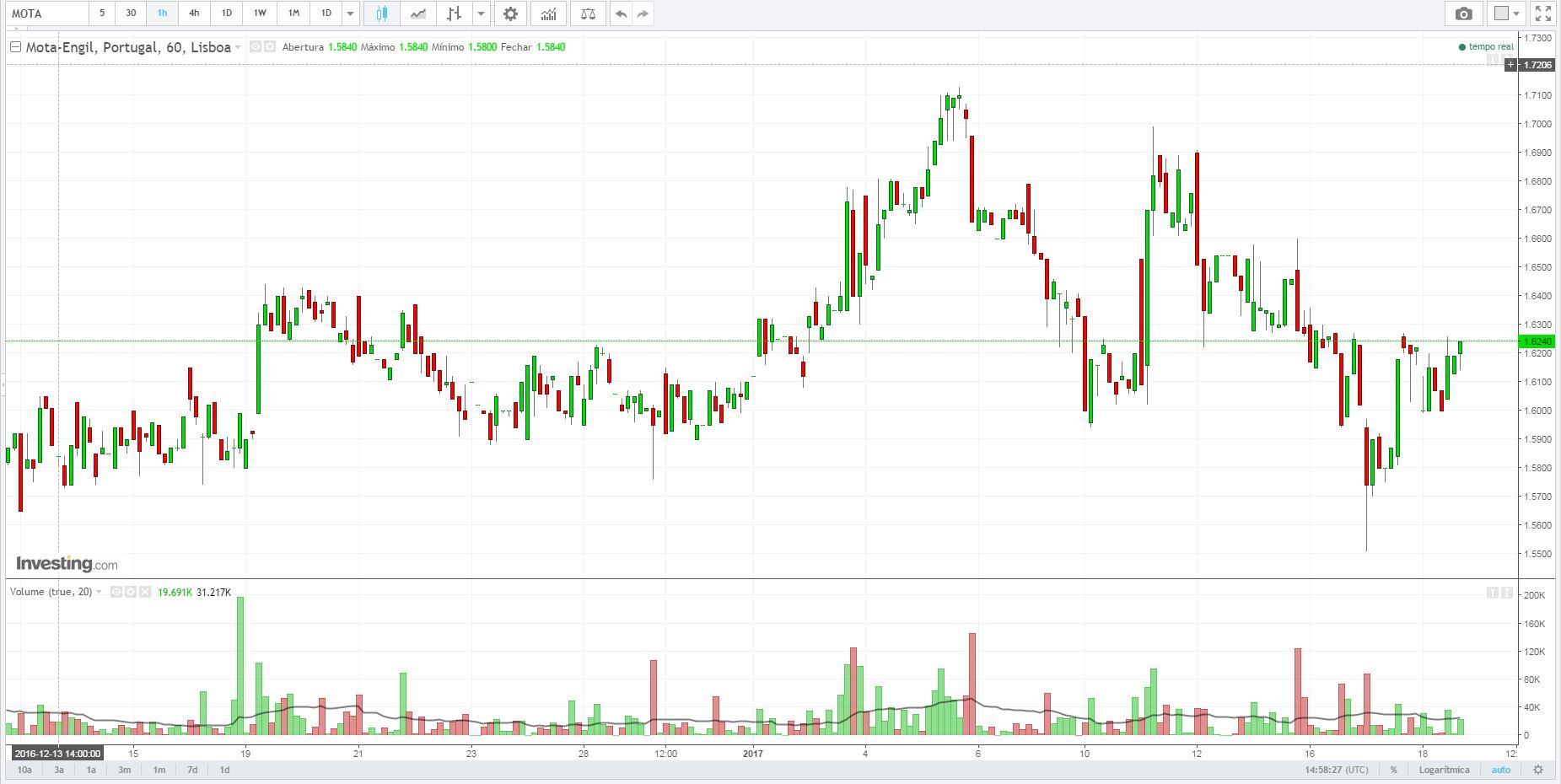 Ou num dos últimos dias de trade da Mota, que ia tocar nos € 1,70, e depois fechou abaixo dos € 1,62?