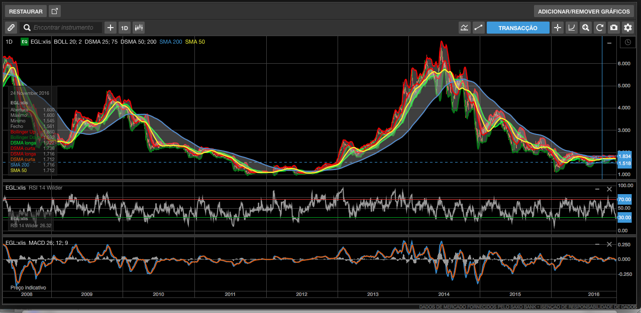 No gráfico, ao valor de hoje, um ressalto nos próximos dias poderá ser possível, mas, talvez amanhã venha abaixo dos € 1,50, antes de tal movimento ocorrer.