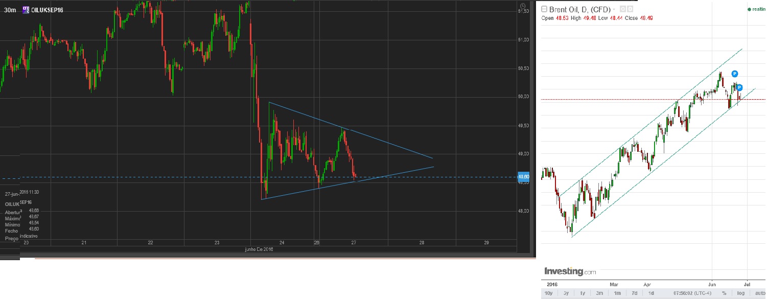 Parece uma resistência bem definida nos 50$... Não me parece haver grande variação até ao resultado do Brexit