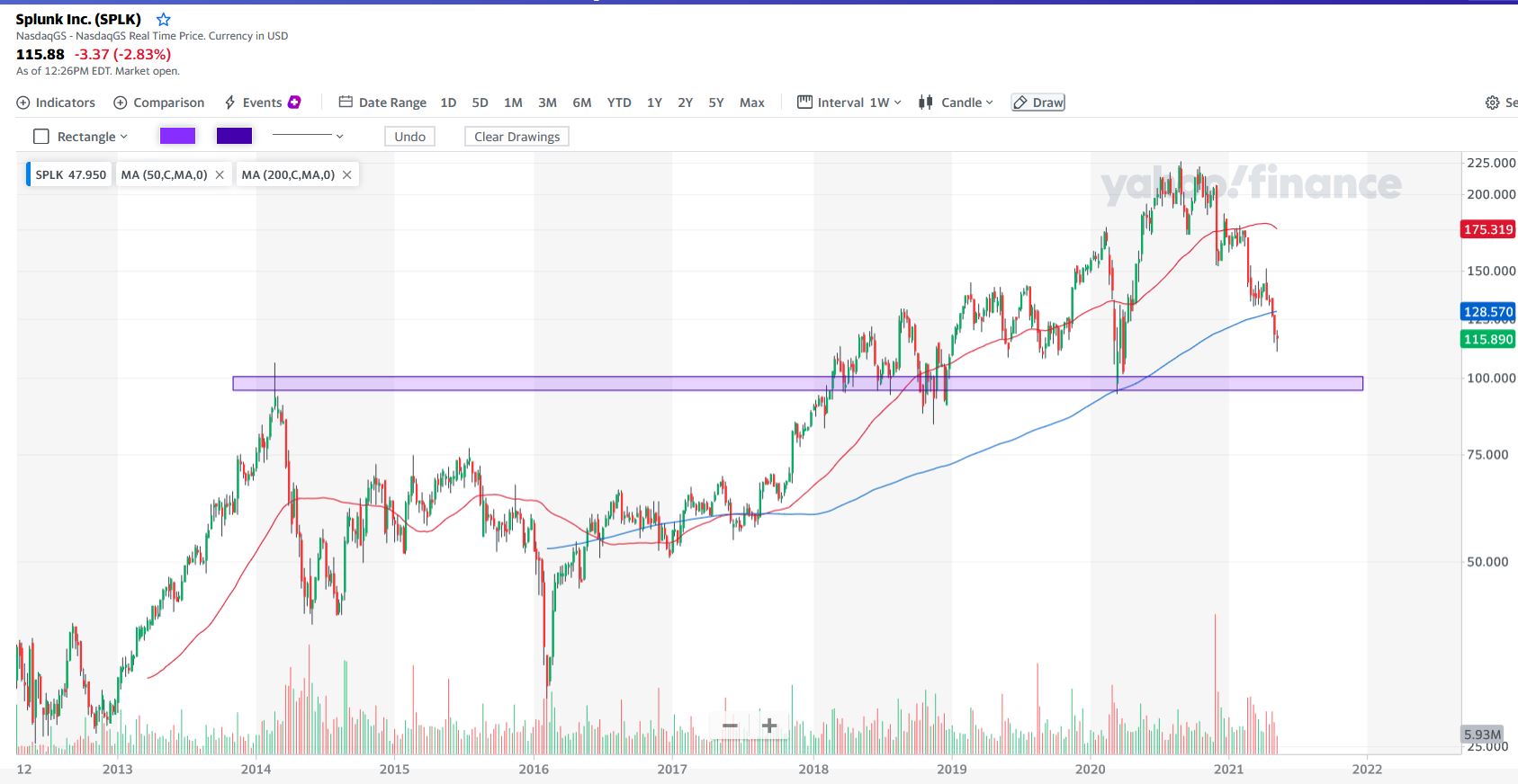 Outra que me deixou a olhar para ela foi a Splunk. Pelo o que li o valor atual da cotação está abaixo do que deveria ser real.