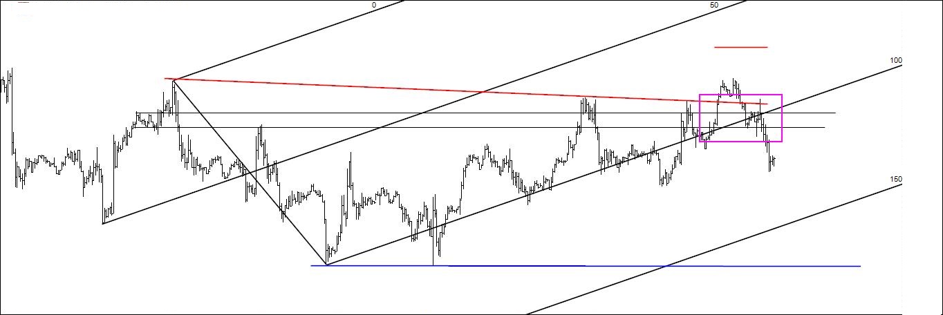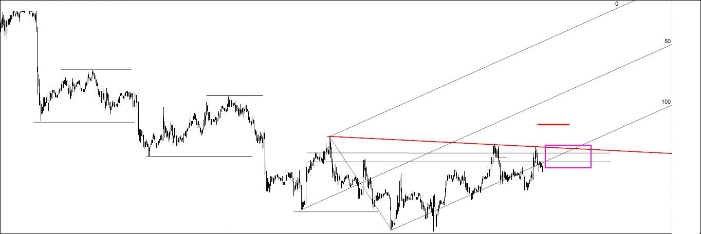 Do que percebi, diria tb que utilizaste a linha inferior da fork ascendente como resistência a qual, juntamente com a linha descendente de máximos, deverá, na intersecção das duas linhas, criar uma zona ideal para shortar... (o tal X no mapa do tesouro que o T. Morge refere num qq artigo), isso parece-me claro.