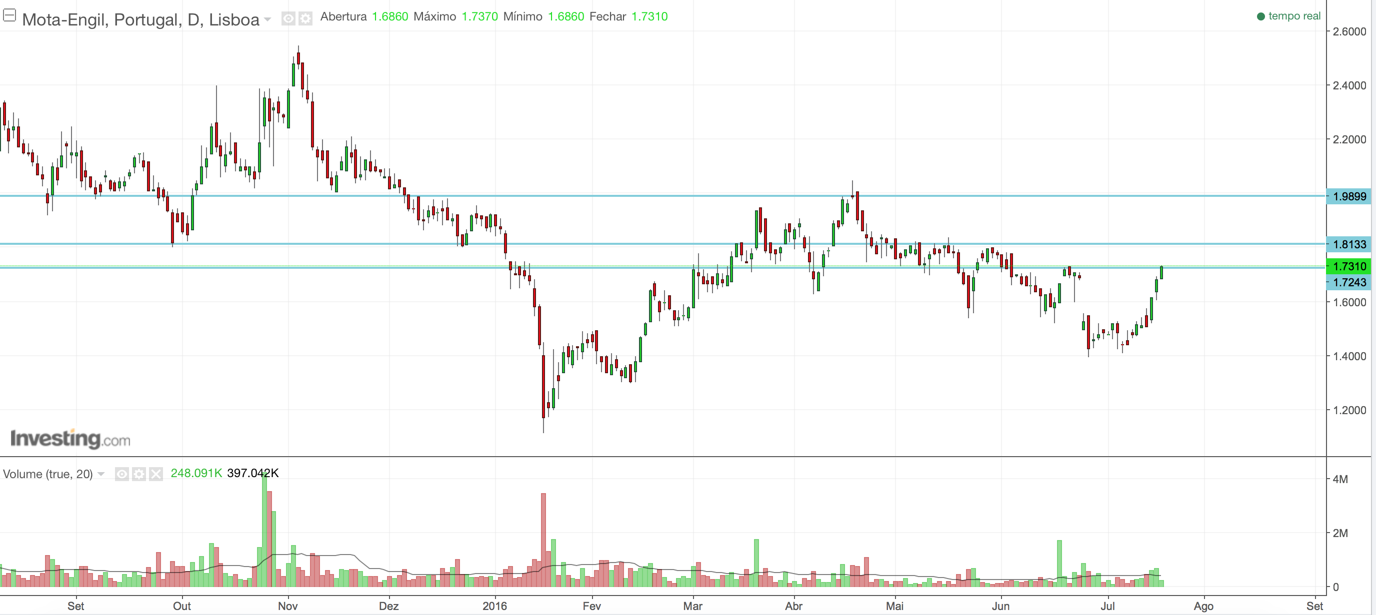 Se passar a resistência dos 1,73€ pode subir até aos 1,81€. E passando esta tem caminho até aos 2,00€. Muita atenção chegando aos 2,00€, pode ser a fronteira entre Bull e Bear Market na minha opinião.