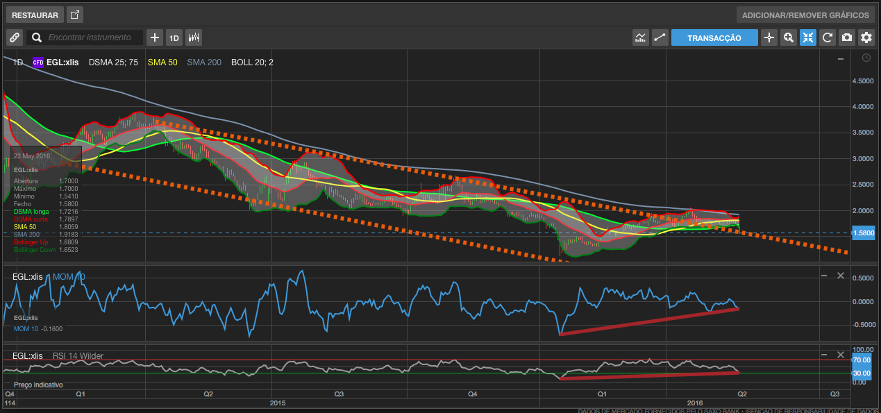 Creio que, terá vindo até ao anterior suporte, e, que para já os € 1,58 irão segurar a cotação.