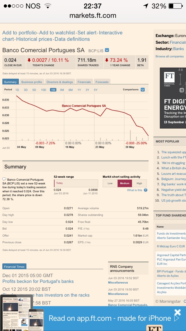 Hoje falei com um gerente do Bcp que me diz, passo a citar: