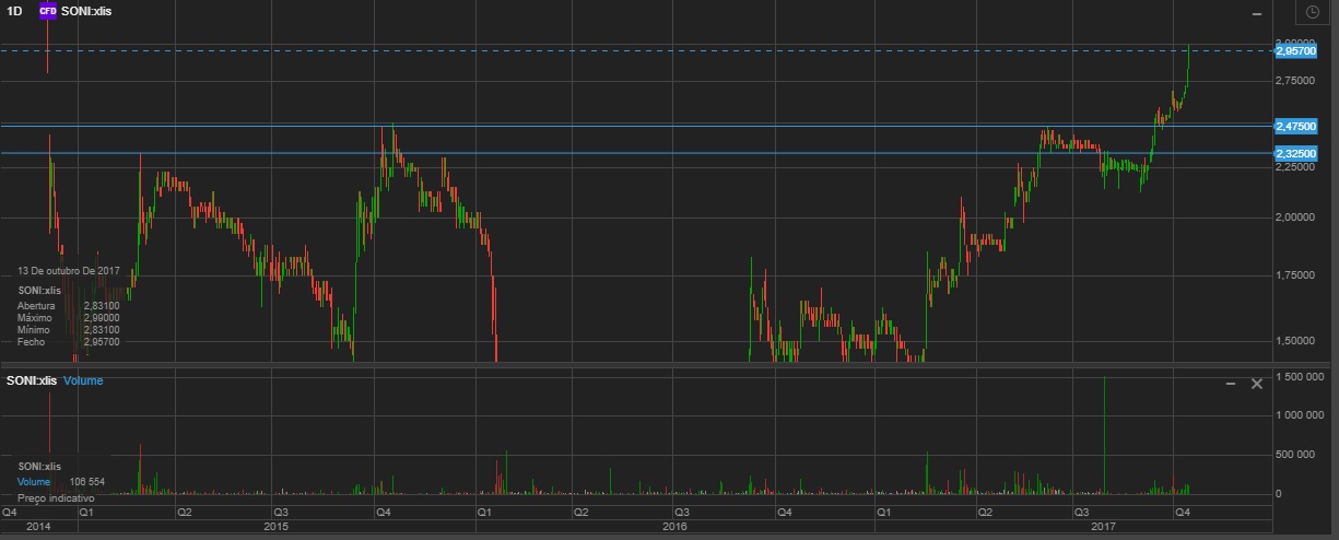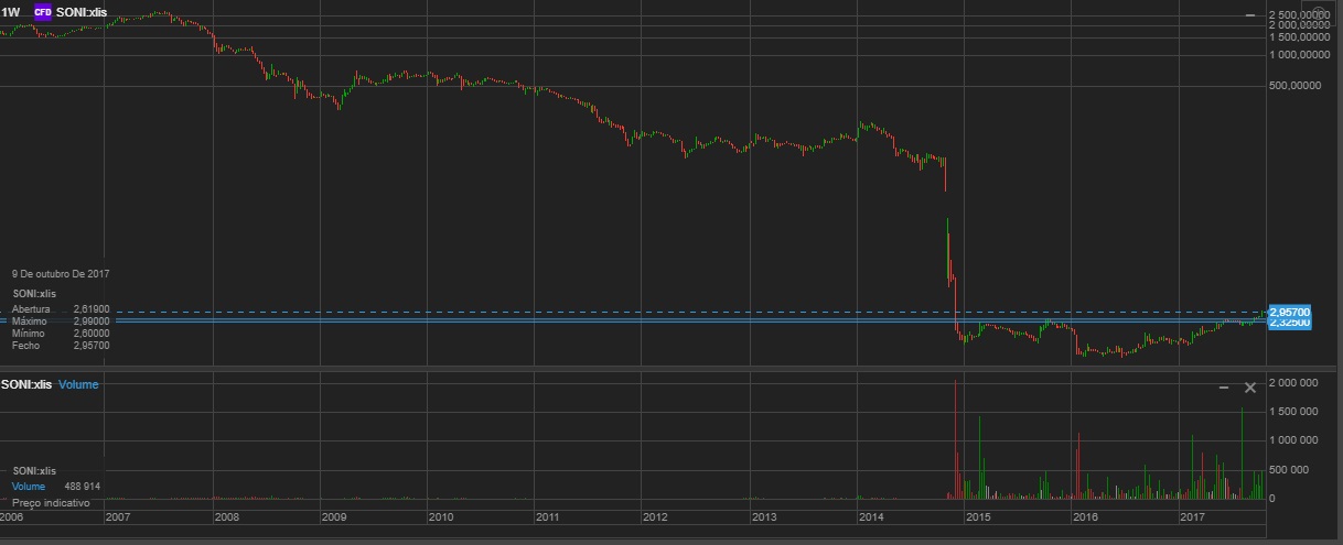 Se as coisas continuarem a correr bem a SONI ainda vai dar dinheiro a ganhar (embora agora já bastante menos), mas ainda não está preparada para uma crise (que a transformaria num redondo zero). Foi um bom lucro em pouco mais de um mês, agora estou a reduzir o risco do meu portfolio (por motivos pessoais e porque me parece que o risco aumentou bastante nos últimos meses e ao mesmo tempo as acções subiram todas) e esta foi uma das vítimas (já que era claramente a acção mais arriscada que tinha).