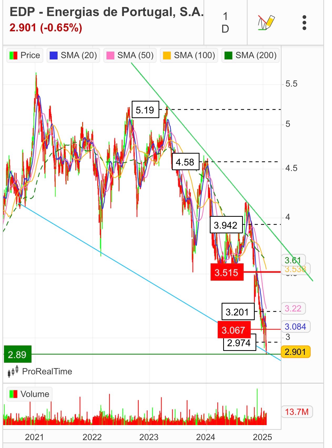 É difícil adivinhar os mínimos mas nesta altura o momento da EDP é péssimo. Não me admirava nada que fizesse novos minimos