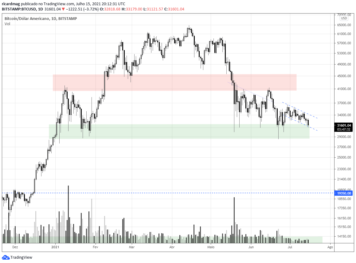 pedro, a questão do crime é de somenos, tanto se cometem crimes com cripto, como com dinheiro físico. O ponto está no seguinte: a Bitcoin tem uma assustadora tendência de baixa. Onde para? Não sei, mas temo que seja mais perto de 20000 que de 30000.