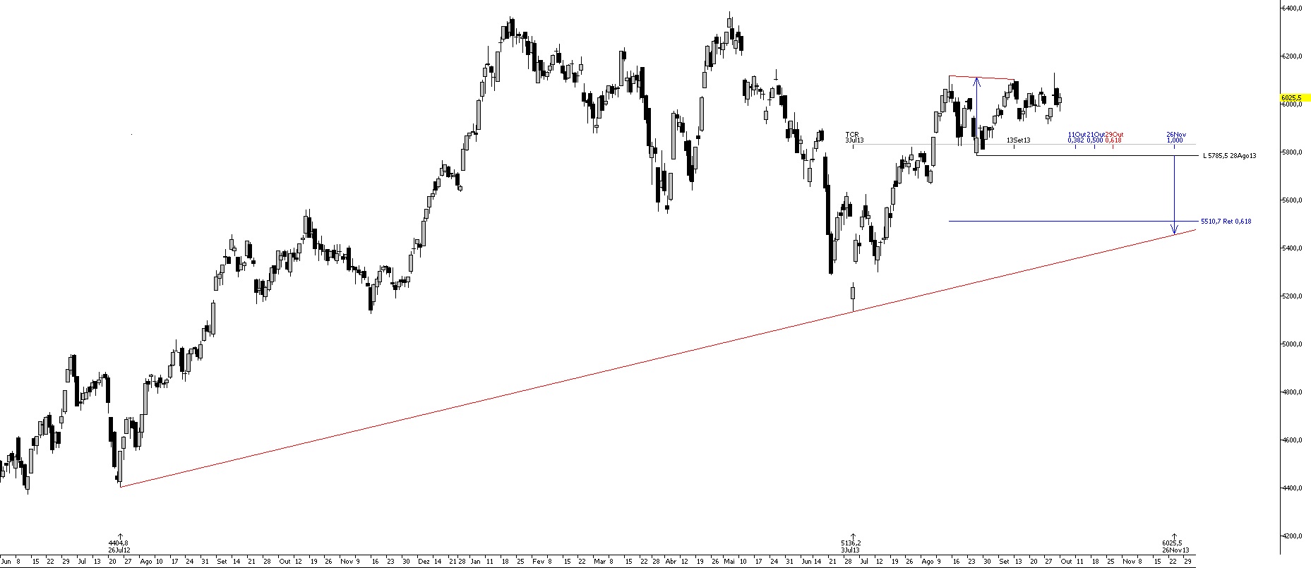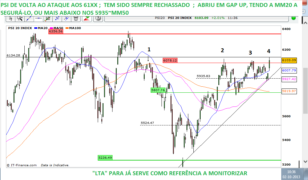 Pois para mim, "está a colocar-se a jeito" para novas subidas! Poderá ter uma ligeira correcção até aos 5850-5900...