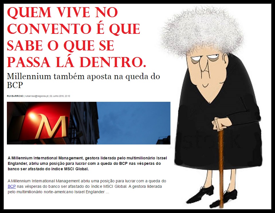 NaoSei Escreveu:acintra Escreveu:Esta noticia da IS e da Sonangol é o que faltava para o BCP ser obrigado a fazer um aumento de capital brutal, pior que o do Banco Popular, para resolver impariadades e para diluir a posição da Sonangol.