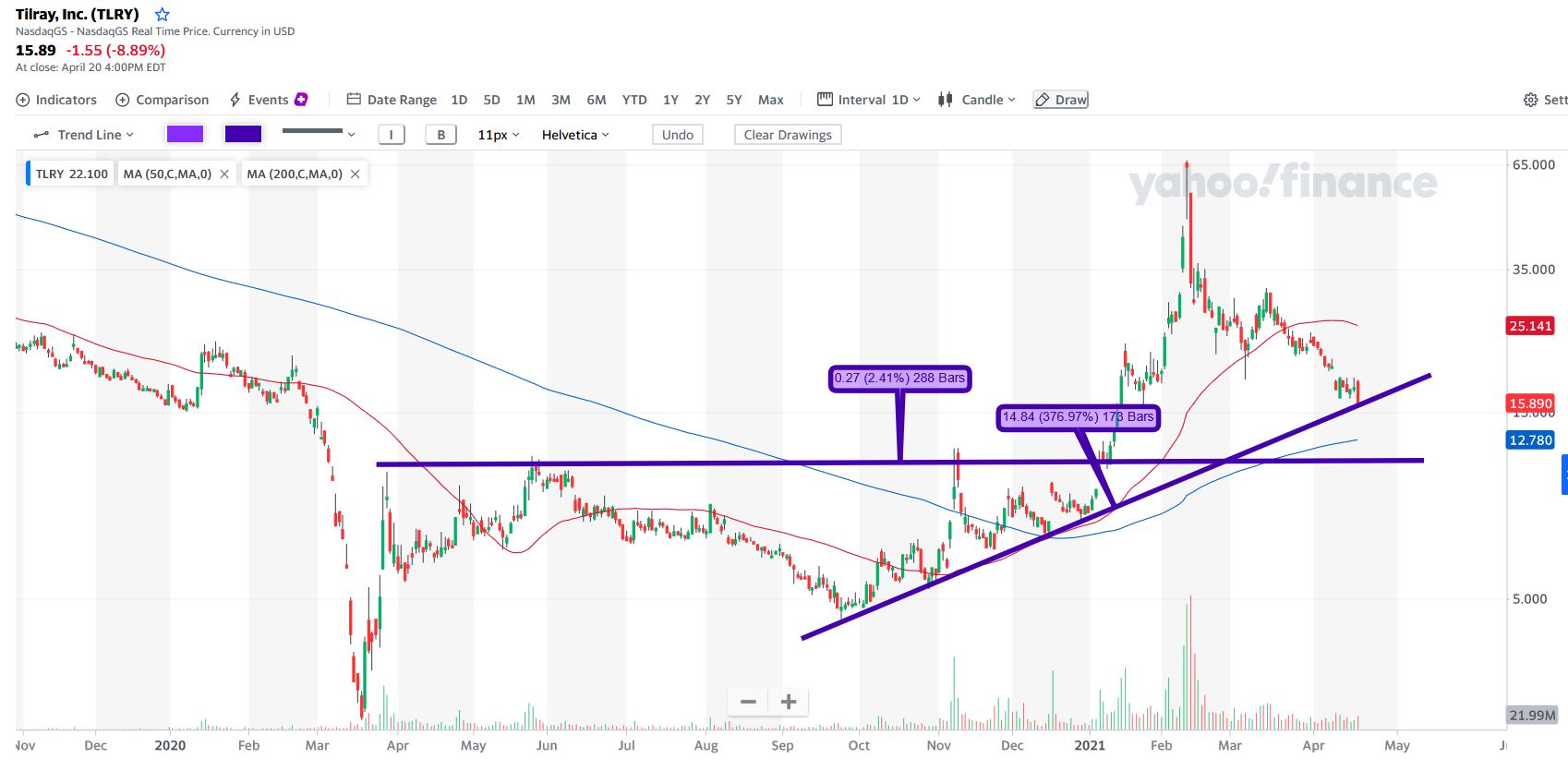 Tenho andando de olho na TLRY e inclusive já tive uma ordem nos 15$ que acabei por retirar.
