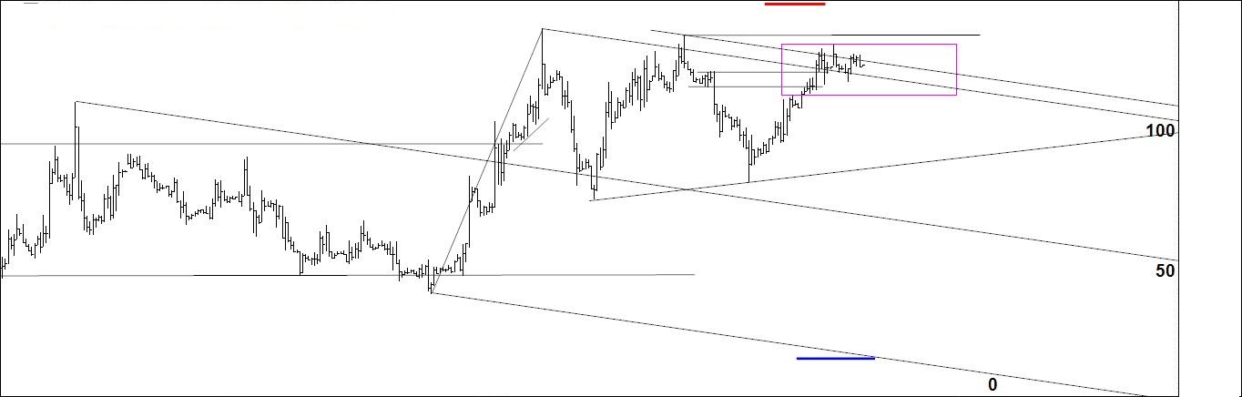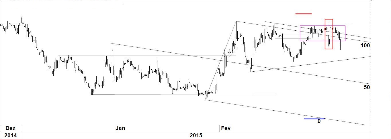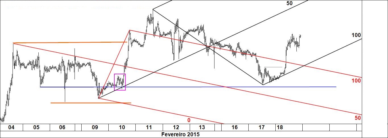 Pela última vez coloca-se aqui o gráfico 1. Como já tem muita informação para o meu gosto vou apagar tudo e aproximar-me do preço pois só assim consigo ver os especuladores andam a fazer (gráfico 2).