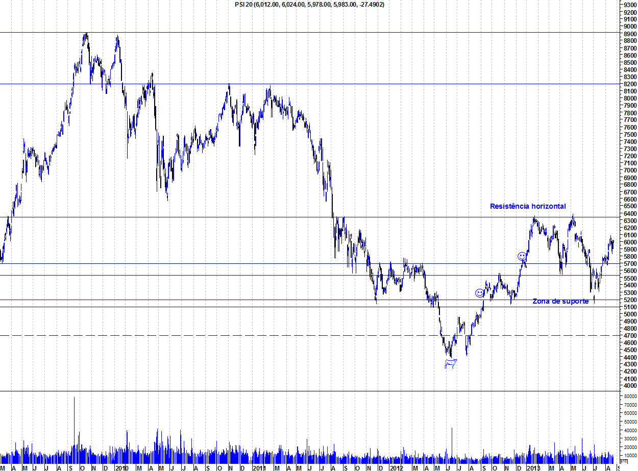 Parece-me que a próxima semana poderá ser crucial para perceber a direcção que o PSI vai levar, neste momento pela análise que tenho lido, visto e realizado, não consigo definir nenhum movimento, preciso de ver o que acontecerá nos primeiros dias da semana para poder ter uma visão mais clara do que poderá acontecer.