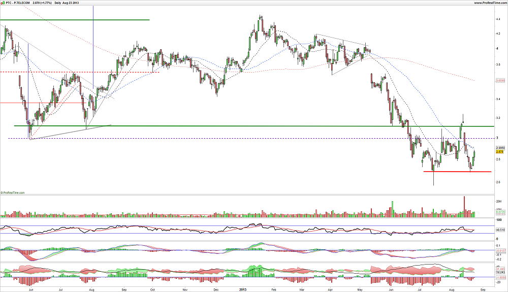 A tendência de curto prazo está completamente do lado Bullish. Nos próximos dias será testada a tendência neutra de médio prazo e a Bearish de longo prazo. Isto significa que a LTD que vem pressionando o PSI desde 2008(!!!) será testada. Existe força para ser derrubada?