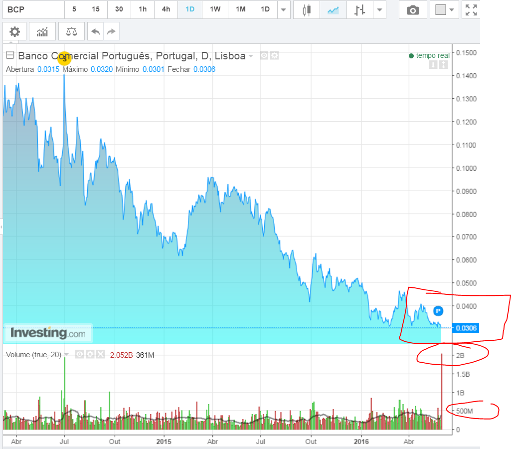Por lapso, li incorretamente o volume diário no dia 23 do BCP. Esse erro levou-me a procurar os volumes do BCP , nos ultimos 5 anos. O máximo que encontrei foi :