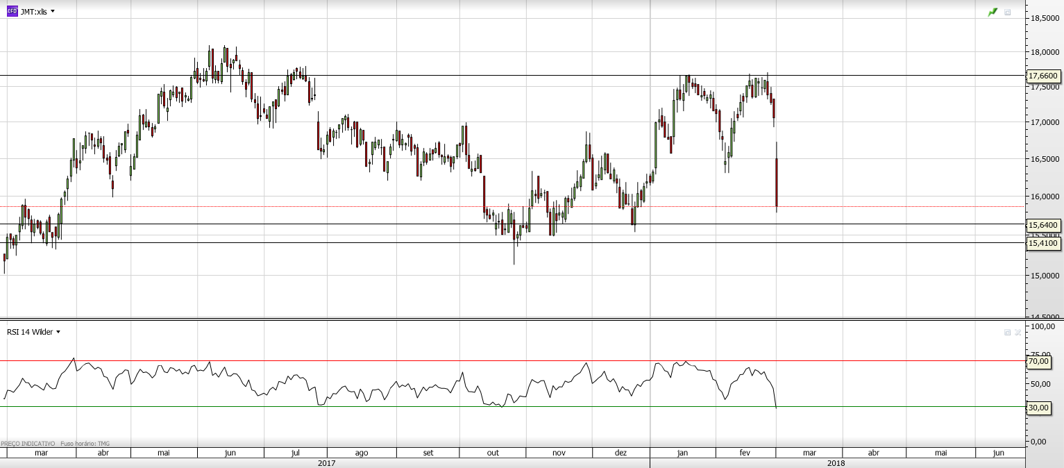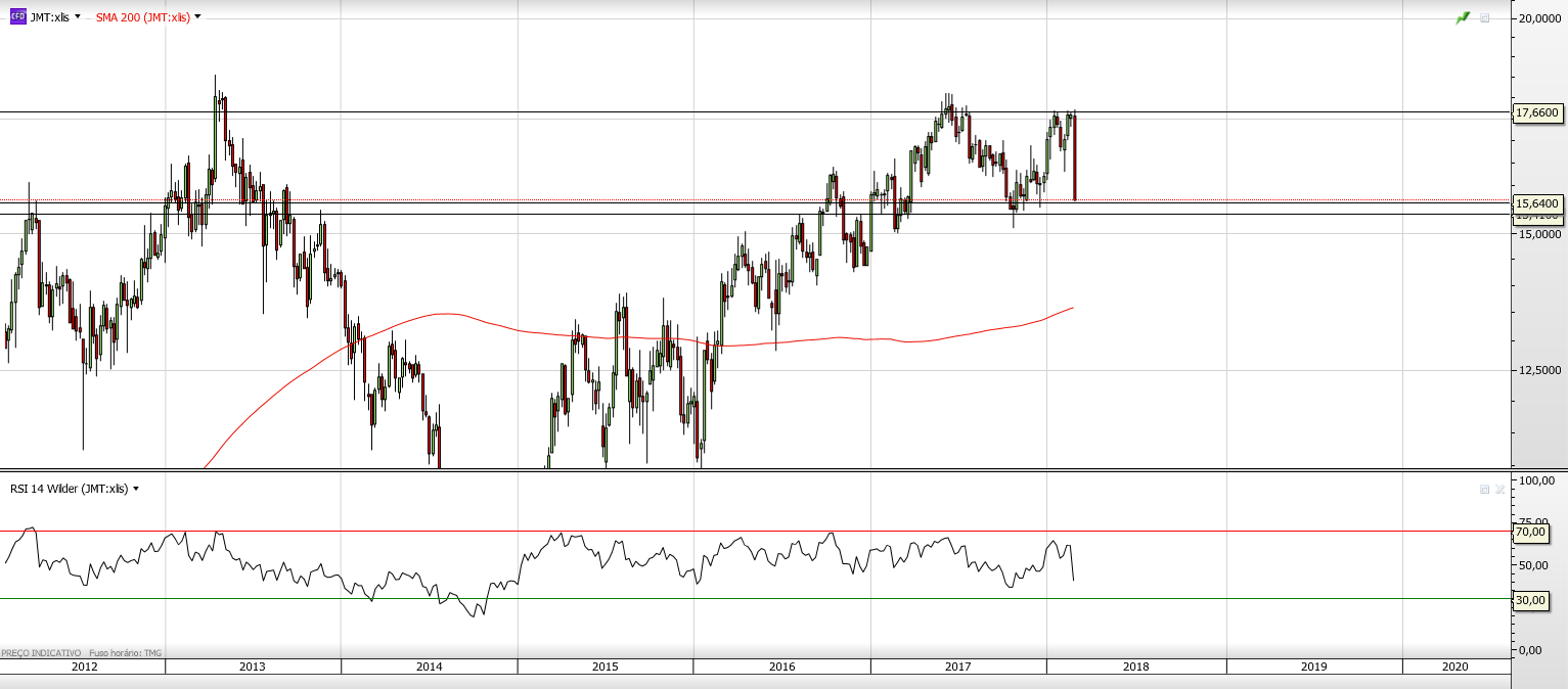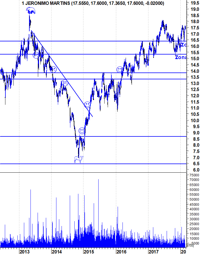 A acção dá o primeiro grande sinal de fraqueza e, por isso, estive Bullish desde a zona dos 11 euros, em Março de 2015 e com este primeiro grande sinal de fraqueza, dispo o meu fato de touro. Como bem referes, sou incapaz de dizer que a JM está bearish, mas é a hora de deixar de estar bullish no Bull Market mais antigo da Bolsa portuguesa.