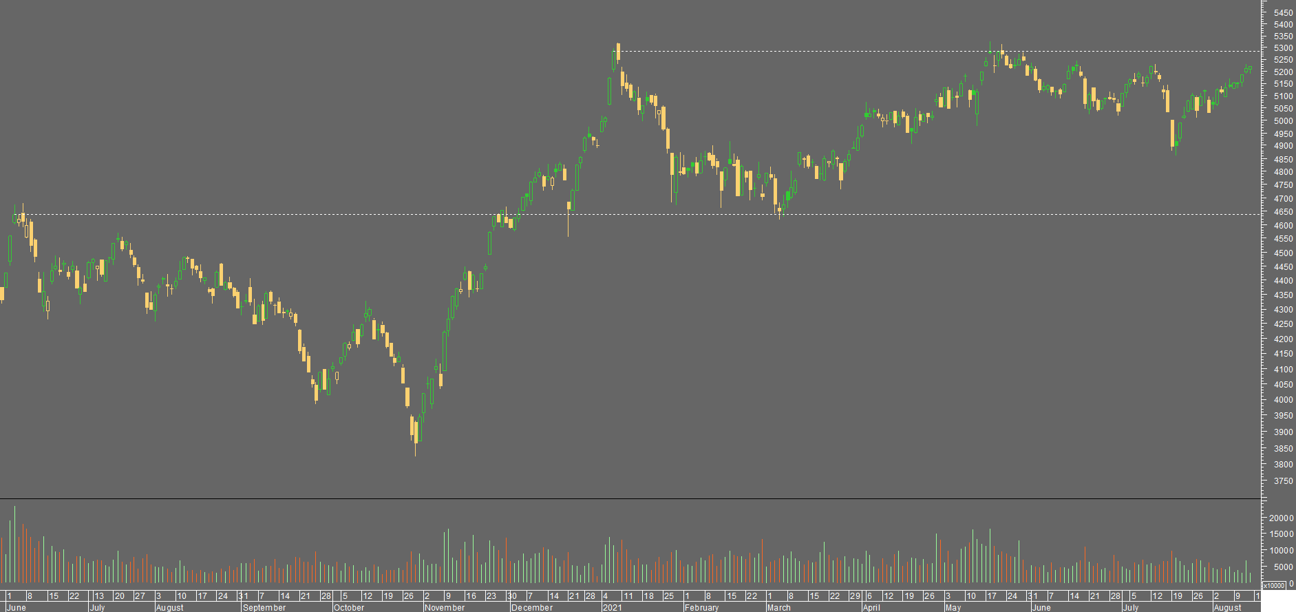 contudo, se hoje fechar acima dos 5219.22 terá sido dado um sinal de força (alto mais alto) por parte dos touros