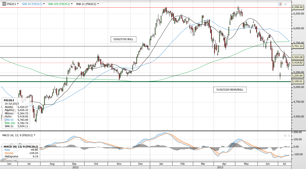 Mas, não estou convencido de que o PSI vá concluir o target do duplo topo. Ainda penso que o PSI não vai descer inferior ao máximo do dia 3 de Julho, 5256,61. Veremos...