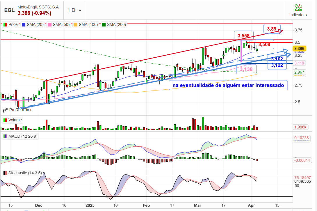 Entendo o teu ponto de vista, mas o que eu acho estranho é justamente a Mota-Engil não ter acompanhado o crescimento do mercado durante o período em que os índices estavam a subir. Sim, agora, com a queda dos índices, a Mota-Engil tem aguentado bem, o que é positivo, e uma queda de 1% num dia em que todos os índices caem 4% é de facto um bom sinal de resiliência. No entanto, a questão que coloco é por que razão, quando os mercados estavam a subir, a Mota-Engil não acompanhou essa tendência e não refletiu mais o seu bom desempenho.