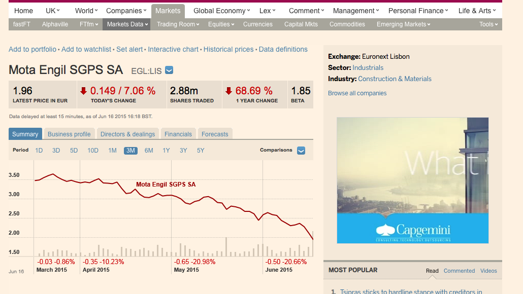 Isto até 6.ª feira, 20.06.2015, desce mais 20%, e vai aos € 1,50 que o Artista deseja