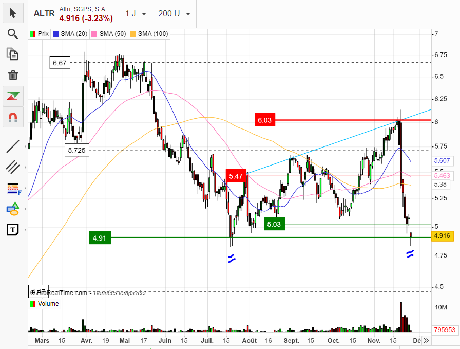 Neste momento nem se consegue saber qual o suporte da Altri, talvez entre 4,20 e 4,50, não sei.