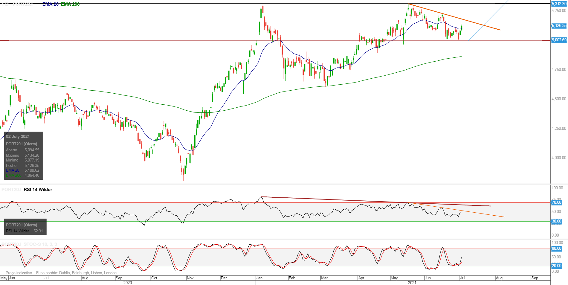 Contudo, para passar decisivamente os 5300 nos próximos dias deverá ocorrer uma subida mais ampla (Galp, BCP, JMT, Sonae em particular)