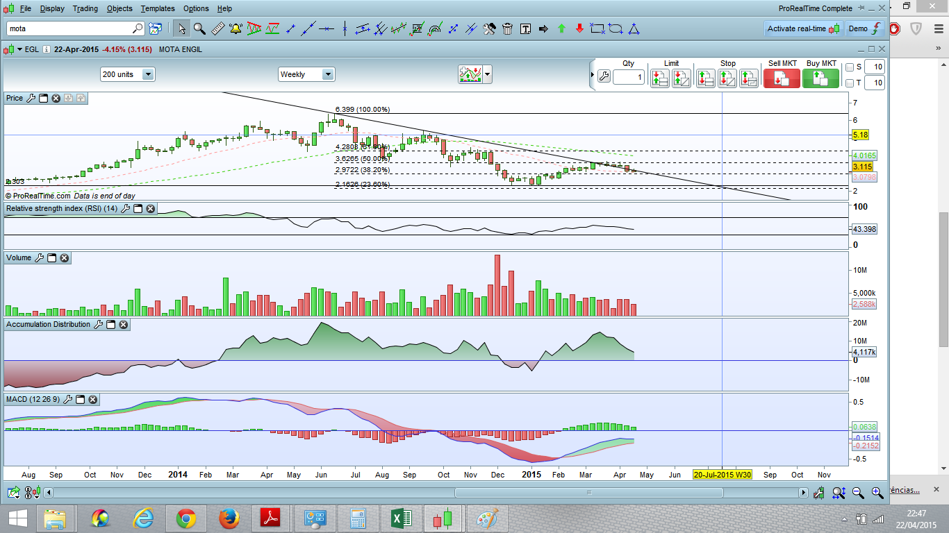 eu entrei na mota a 3.4, aproveitei a descida das ultimas semanas para reforçar a minha posição, neste momento o preço médio das minhas acções e de 3,29 e estou a perder dinheiro. No entanto o meu método para investir é analise fundamental e com base nesta nao tenho duvidas que a medio prazo vou ganhar dinheiro, isto porque, "Citi sobe avaliação da Mota-Engil África para 8,5 euros" sendo a mota engil africa o principal negocio neste momento e aquele que esta a sofrer mais com a queda do petróleo e mesmo assim o seu valor é revisto em alta e o negocio na europa e principalmente na america latina está a correr bastante bem em relação aos anos anteriores a empresa vale pelo menos 800 milhoes nao esquecendo o contrato faraónico nos camarões que quando for assinado elevara o valor da mota para mais de 1000 milhões.