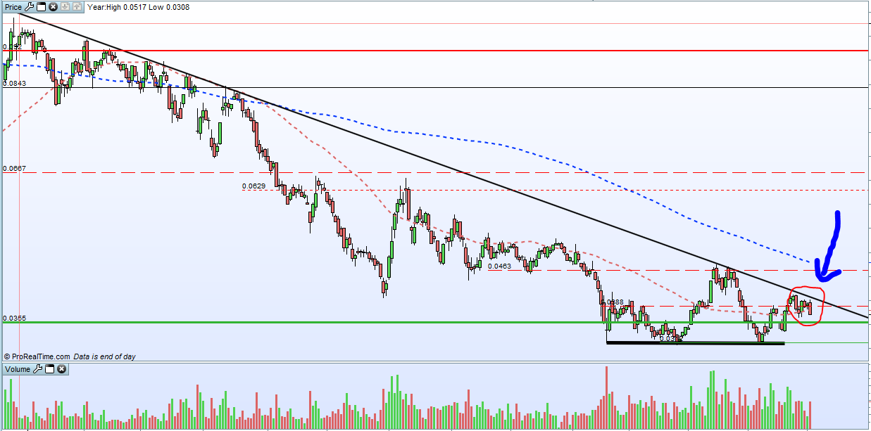 é o que tenho dito caso não faça novos minimos ... se quebrar a zona dos 0.0470 tem um DUPLO FUNDO com projecão ao valor do ultimo A.C pelos 0.065 ... muita fruta mas a A.T é que manda ...