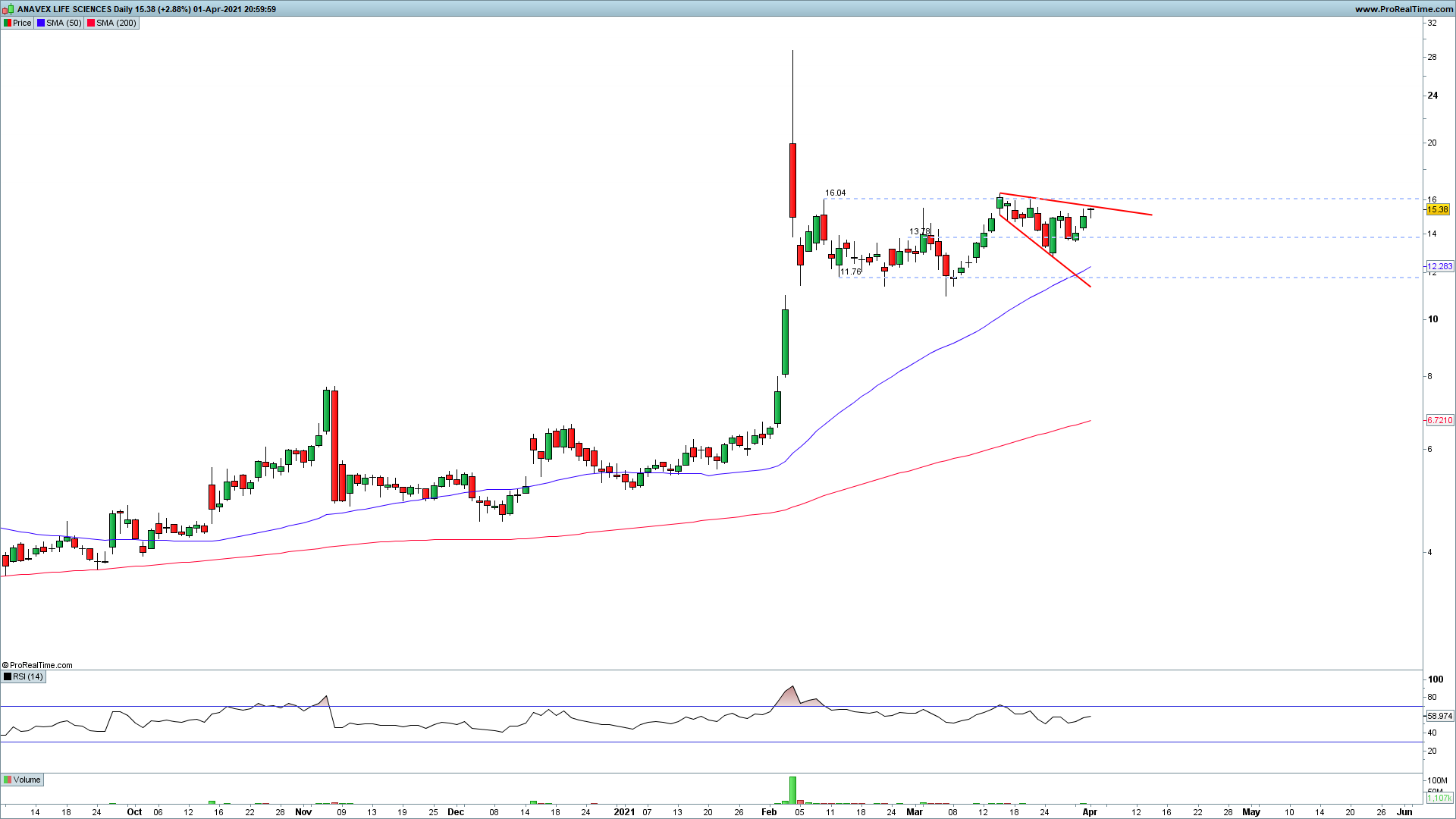 e) comprar se virmos uma quebra forte da zona dos 15.50$, com volume interessante (buy the breakout play).
