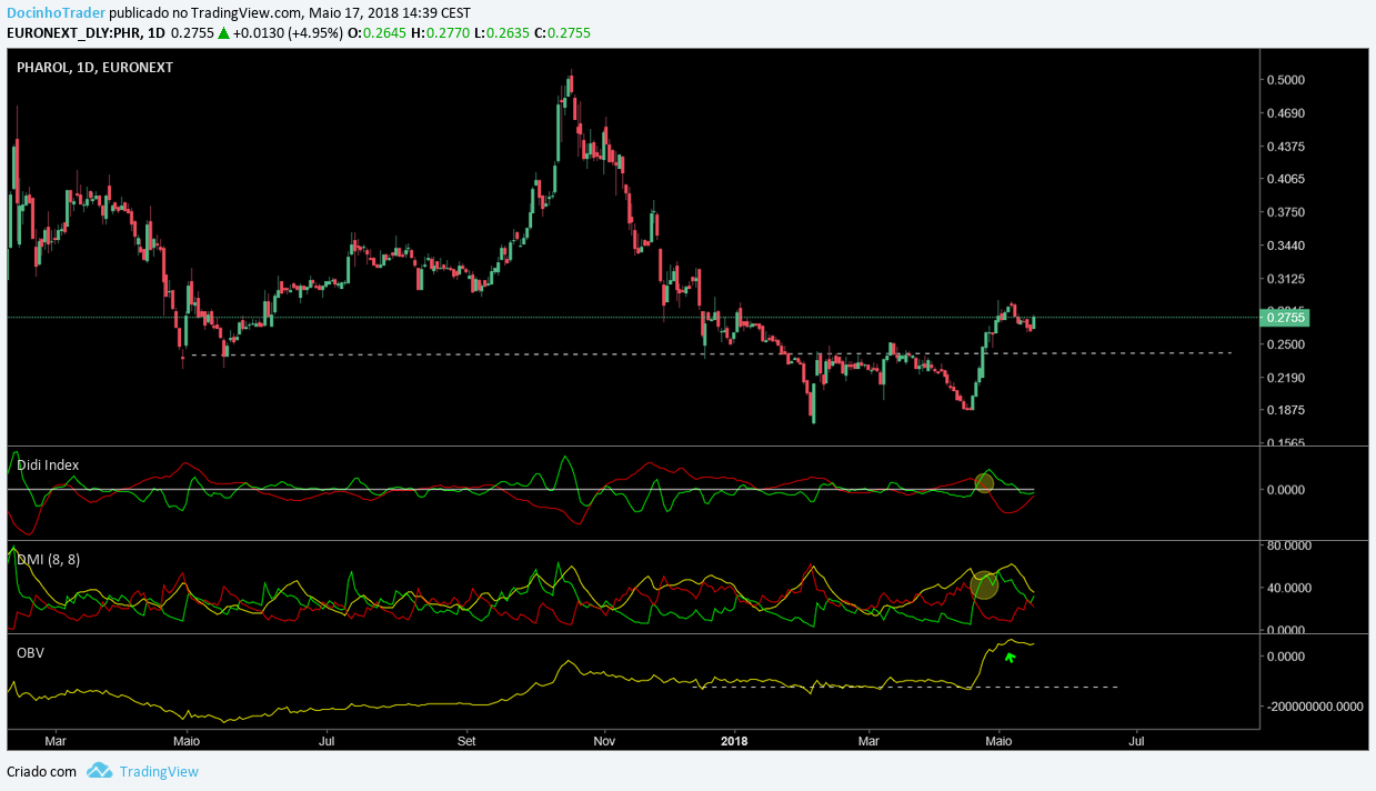 Fecho mais alto desde 08/05/2018, com subida do volume em relação aos últimos dias. Vamos ver verificar se tem força para superar os 0,287€ (fecho do dia 08/05/2018).