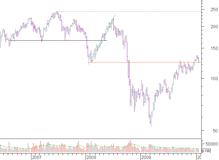 Esta acção já triplicou de valor desde os mínimos de 2009; a tendência de longo prazo é claramente ascendente - tracei uma LTA que tem servido de suporte desde o Verão de 2009.