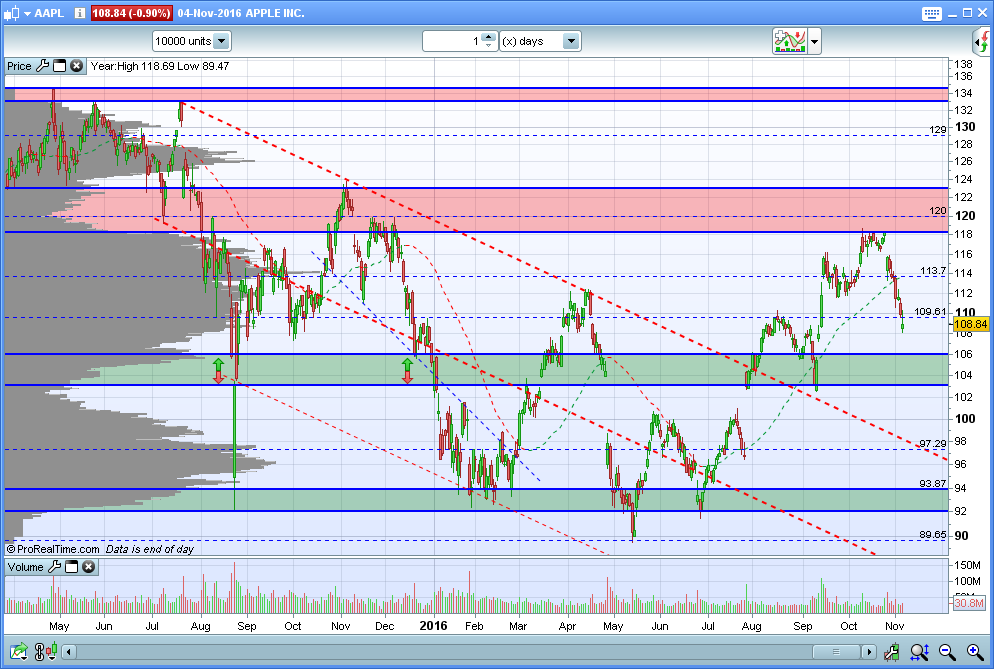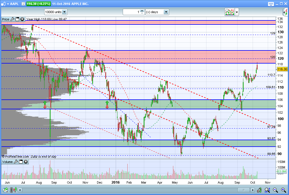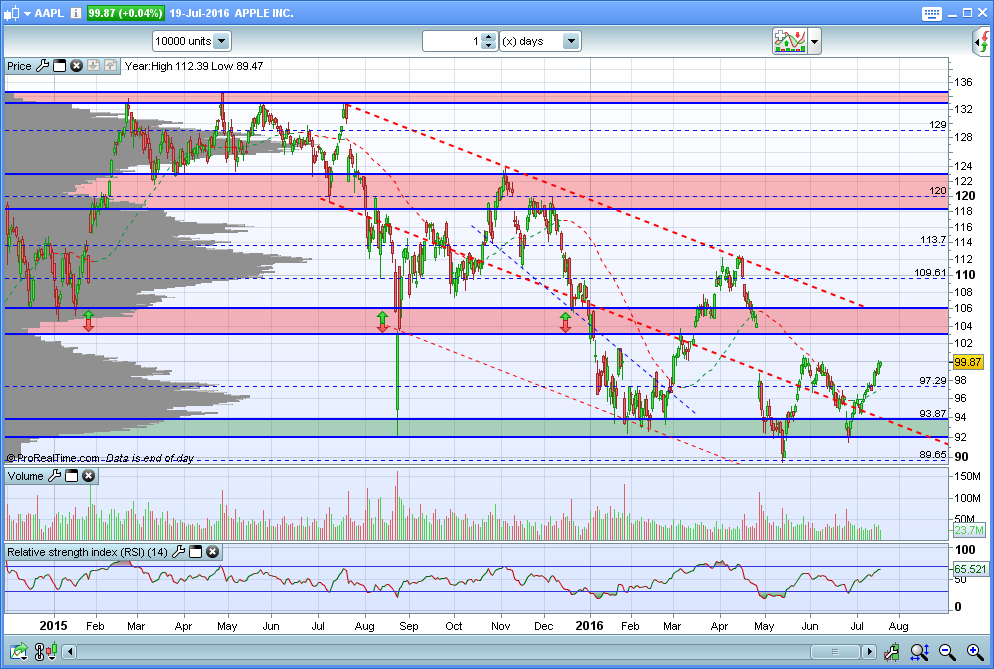 Depois de um periodo de estagnação, a APPLE apresentou resultados superiores ao previsto no final de Julho, que levaram a acção novamente para cima dos 100 USD.