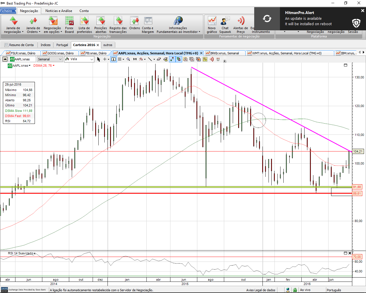 ), quando a Apple chegava ao sobrecomprado, vendia-se e voltava-se a entrar quando o RSI chegava aos 50!