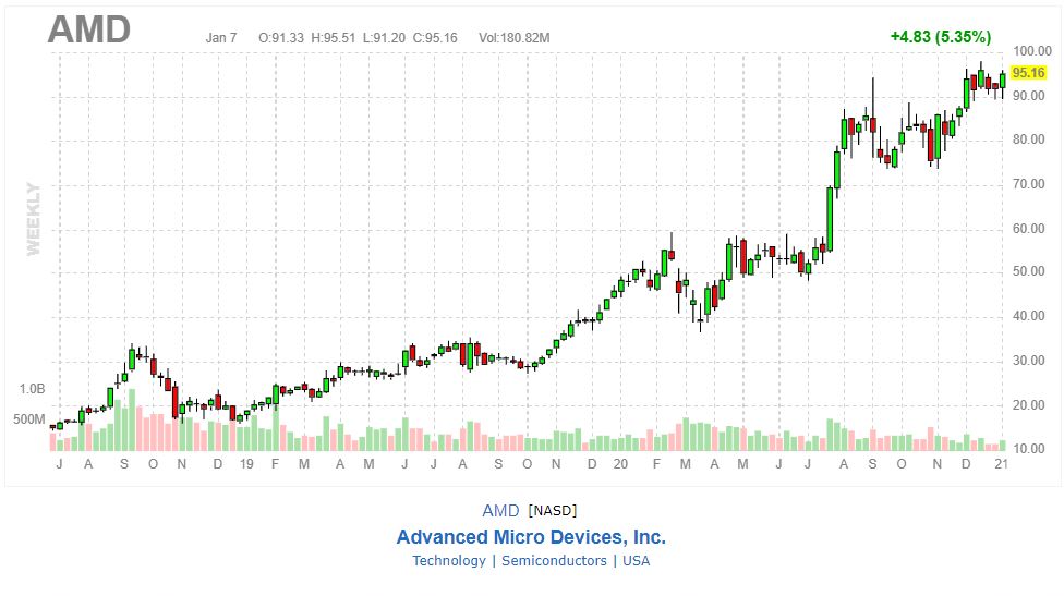 Devem ser mais estas boas noticias que levam a AMD para o valor mais alto se sempre 95,29$.