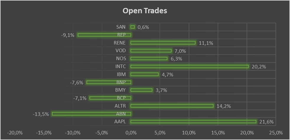 - Iniciámos uma posição em VOD (ADR, para evitar tributação na fonte 8-) ): 3.85 % do capital investido (1.54 % da Carteira com Cash). Pequena posição, tendo em vista, sobretudo, a captação de dividendos. A ação encontra-se em bons níveis de preço e muito embora haja o risco de um dividend cut, o DY é confortável e o preço incorpora já essa perspetiva.