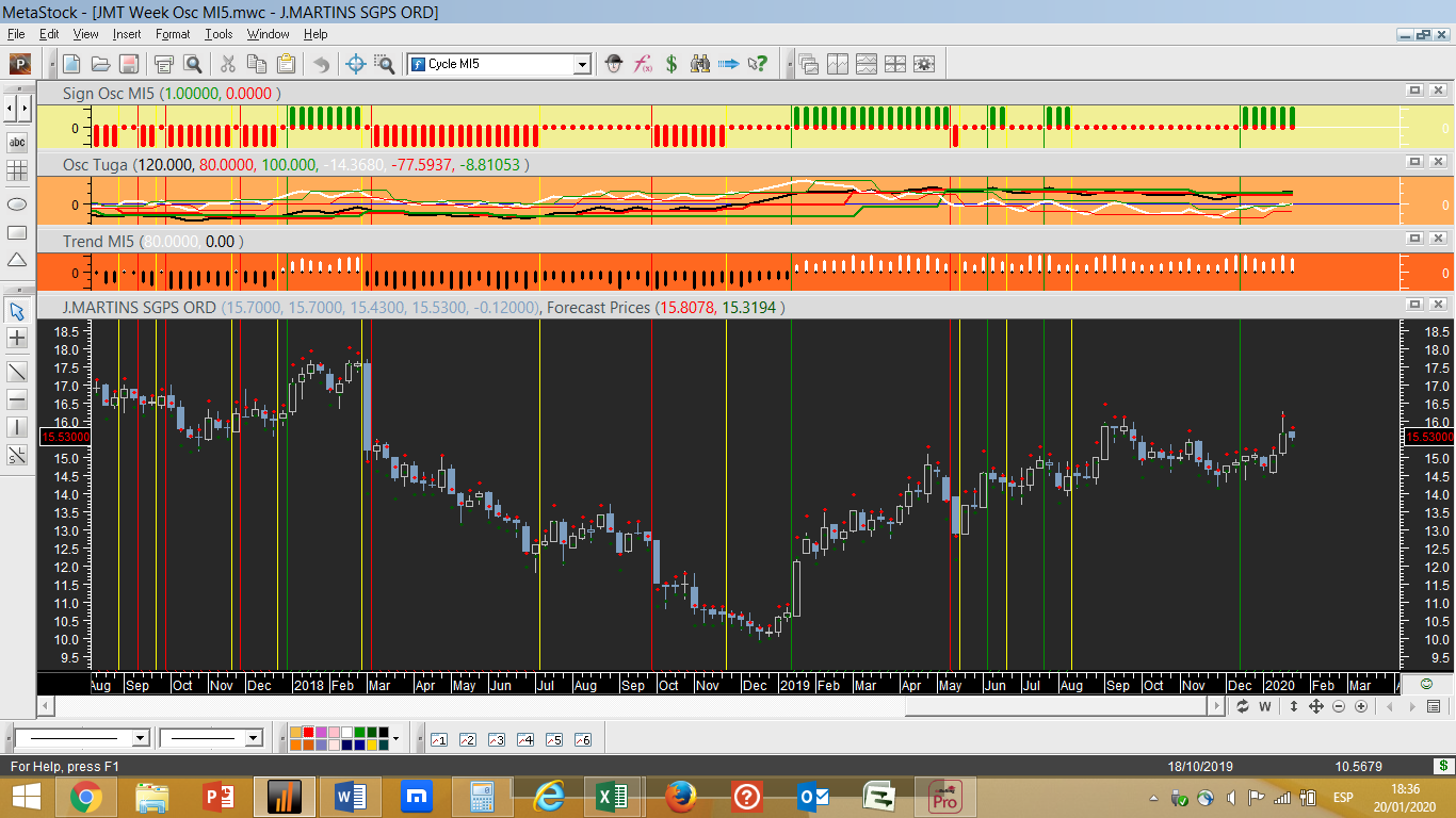 O gráfico do dia é o semanal da Jerónimo Martins, onde a tendência e o ciclo de trading ascendentes parecem ser uma evidência a ir aproveitando.