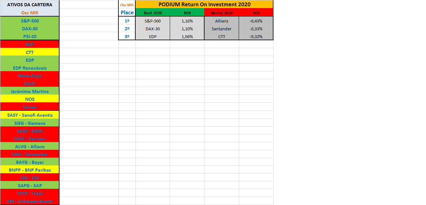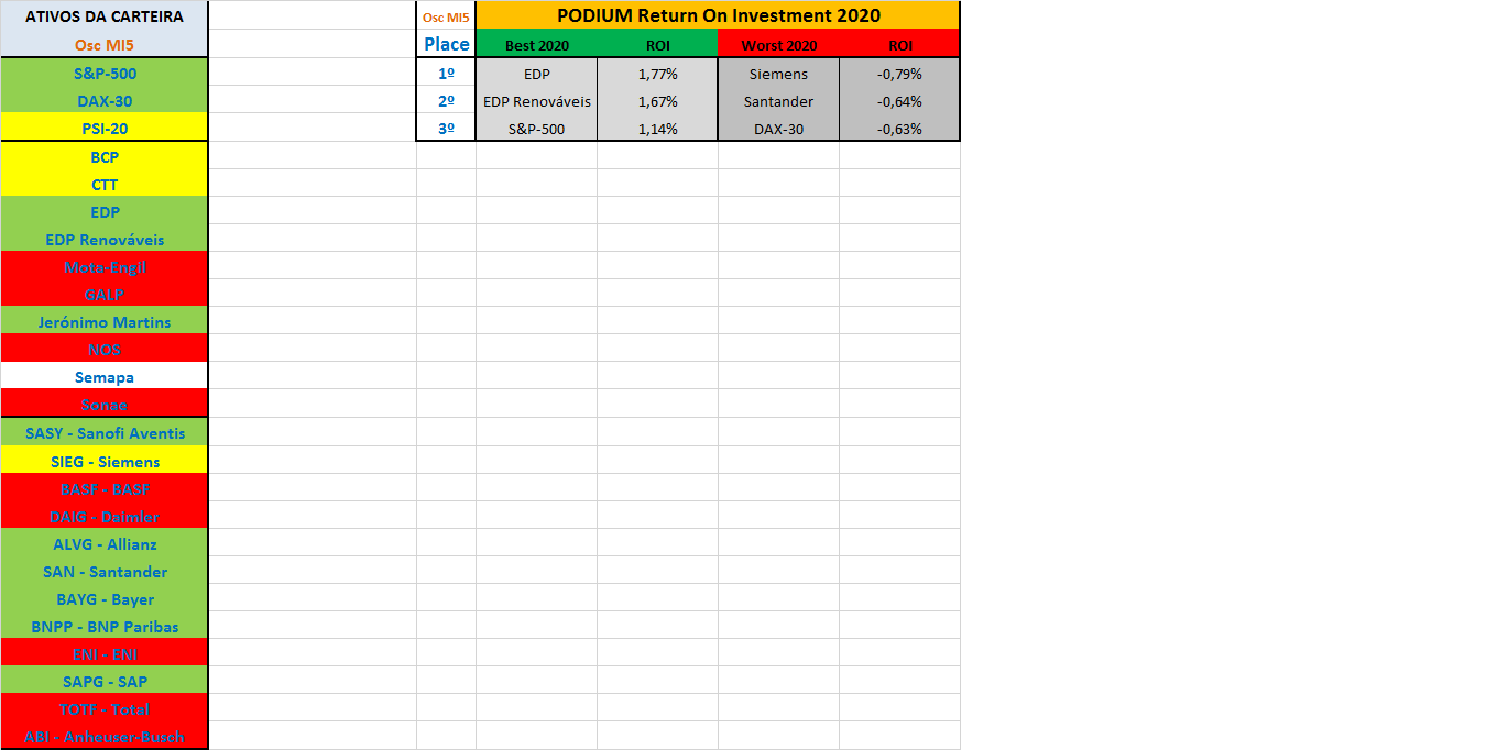 Como reage o sistema de trading “Osc MI5” a este fator de quedas mais relevantes na parte final da sessão? Muito simples, a vela de cada um dos índices nestas condições agrava as desvalorizações do dia introduzindo no programa valores absolutos superiores às desvalorizações reais registadas, como que a reforçar através do alerta desse agravamento uma eventual saída da posição mais rápida do que poderia ocorrer com a simples desvalorizaçao nominal.