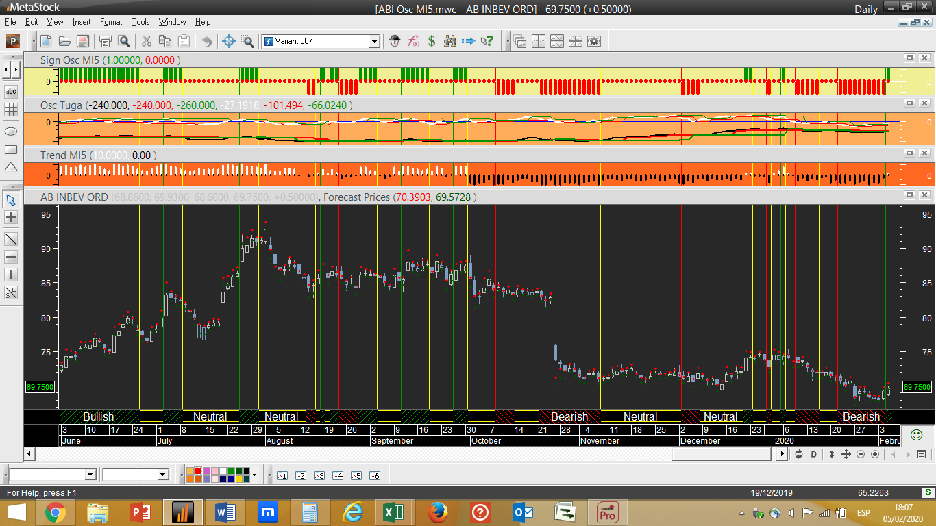 Anheuser Busch Inbev – Anulada a possibilidade de passar de neutral a vendida no final da semana, mantendo-se portanto neutral. Ver 2º gráfico abaixo.