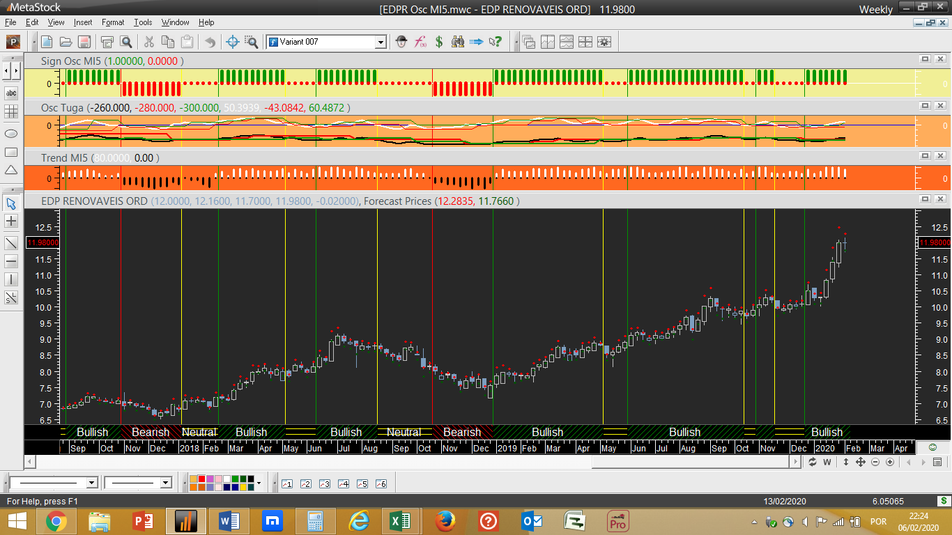 O gráfico do dia representa neste tópico a estreia duma acção que nunca aqui referi até agora, a EDP Renováveis. A tendência e ciclo de trading ascendentes actuais são uma evidência que dispensa comentários. Uma das particularidades desta acção é o facto do sistema de trading se adaptar bastante bem aos timings das viragens dos ciclos de trading ocorridas no passado e daí a explicação para o facto da EDPR ter representado nos testes uma das melhores performances históricas ao nível da rentabilidade dos papéis analisados.