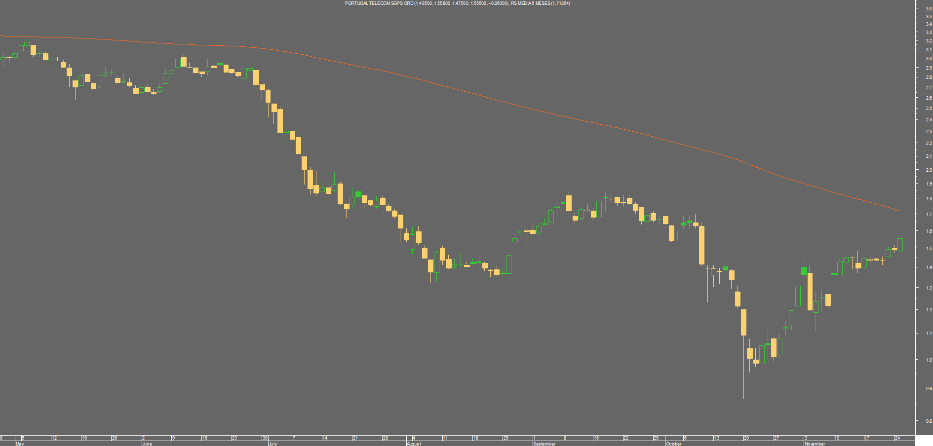 Nota: Para os lados do Brasil a OI anda muito mais atribulada, sobe e desce sem ligar muito à PT, nem quero imaginar onde estaria a ação da PT sem este travão a 1.35€.