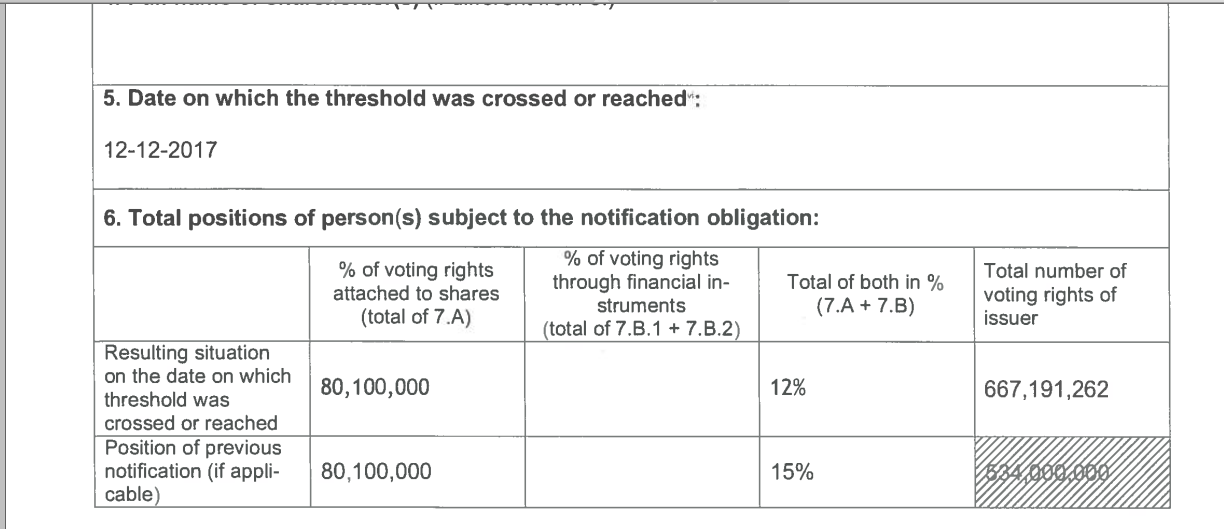 A diminuição da participação qualificada de 15% para 12% da OMAN OIL , deveu-se provavelmente á venda dos direitos , pois o Nº de acções detidas manteve-se rigorosamente a mesma conforme imagem anexa .
